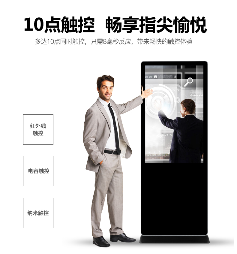 觸摸液晶廣告機出現(xiàn)已有較長一段時間,數(shù)字標牌行業(yè)里的招牌產(chǎn)品,相比觸摸一體機,查詢機等產(chǎn)品,觸摸液晶廣告機技術(shù)應(yīng)運而生,逐漸在多個領(lǐng)域受到熱捧。隨著觸摸技術(shù)和4K高清LCD液晶屏的高速發(fā)展,以樓宇廣告機為代表的產(chǎn)品,已經(jīng)由原來的“舊媒體”變成了“潮流媒體”。